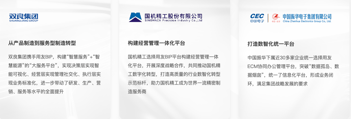为机械设备、工业电子、高科技制造、汽车零部件、通用设备、仪器仪表、金属制品以及新能源设备等行业企业提供专业服务,使能企业实现业务协同、业财融合、数智运营与管理创新,助力大型制造企业数智化转型
